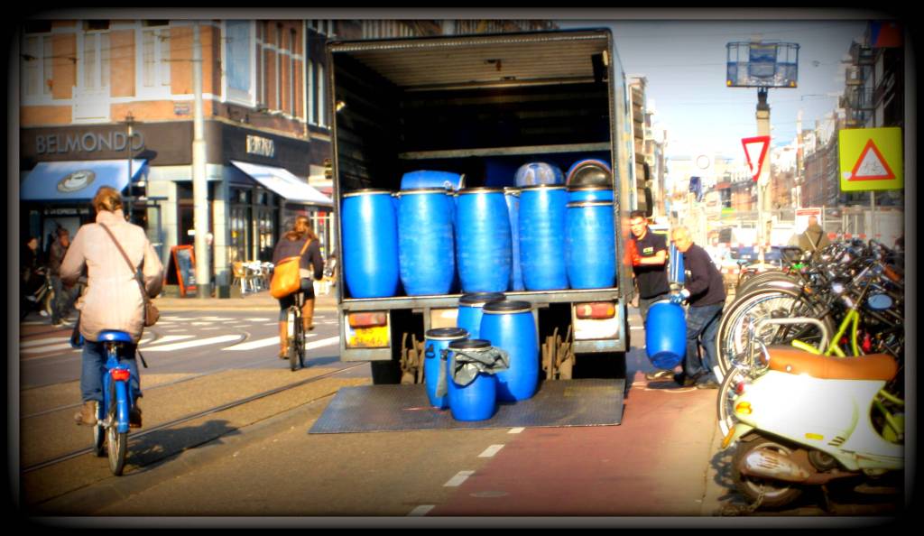 But you see, here is where the ‘epiphany’ came. I live in Amsterdam, working as a PhD candidate, in urban environmental planning – yes I’m an urban observer for a living. But, much of my childhood was spent across Suburban USA: the land of wide streets, single-family homes, and where old refers to ‘built more than 10 years ago’. Our streets, and the vehicles that occupy them, dominate our lives. It is nearly impossible to block these streets, even if you are moving or renovating. So, in that moment, biking home from the library as it were… I decided it was time to start a blog, and I knew what the theme of this blog would be: urban observation. I love cities and I love Amsterdam – for its beauty, its history, its uniqueness… but more so, I love its iconic charm and quirks. It is the charm and quirks of this city and many cities that cause us to think, to act and react. It’s the quirks that make urban live interesting (and sometimes a challenge). Of course, structure has its place too, but in a real good city, so do the quirks and often they dominate.