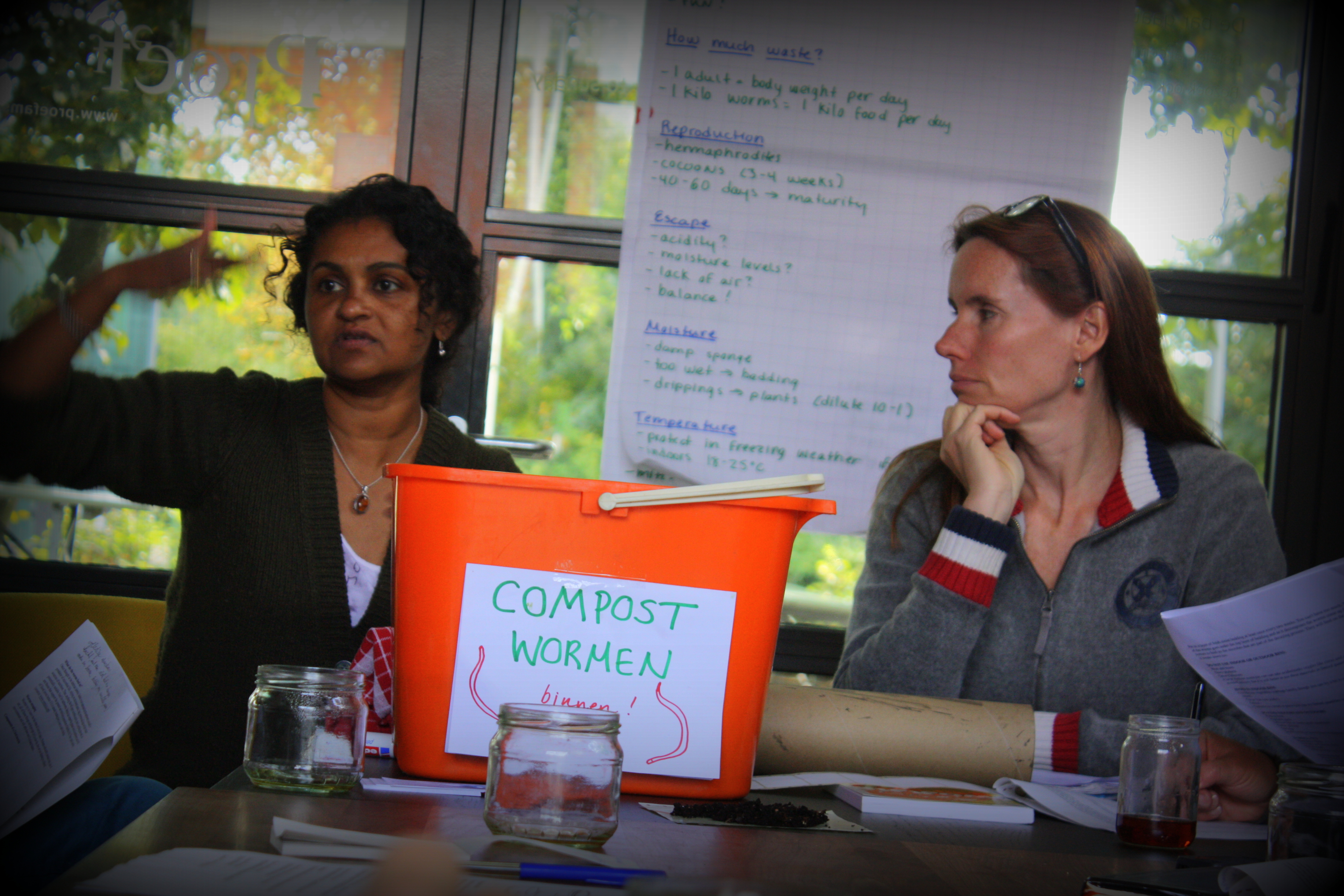Ann & Suzanne, of Cityplot Amsterdam, ran the 2-hour workshop, explaining why to use worms for composting, how to do it, what worms like to eat and what kind of environment they like to live in. (All of the information in this post was accumulated during the workshop.)