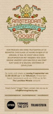 In September 2012, I attended the Amsterdam Harvest Event, hosted by ‘Farming the City’ and Cities Magazine.  Local farmers and urban agriculture enthusiasts were invited to sell their produce (produced in or around Amsterdam) or share ideas.  At the Harvest Event, I learned about Cityplot.  “City Plot is an urban farming collective that supports people in growing their own organic food – on balconies, on windowsills, in gardens, on empty lots, and along the street!”