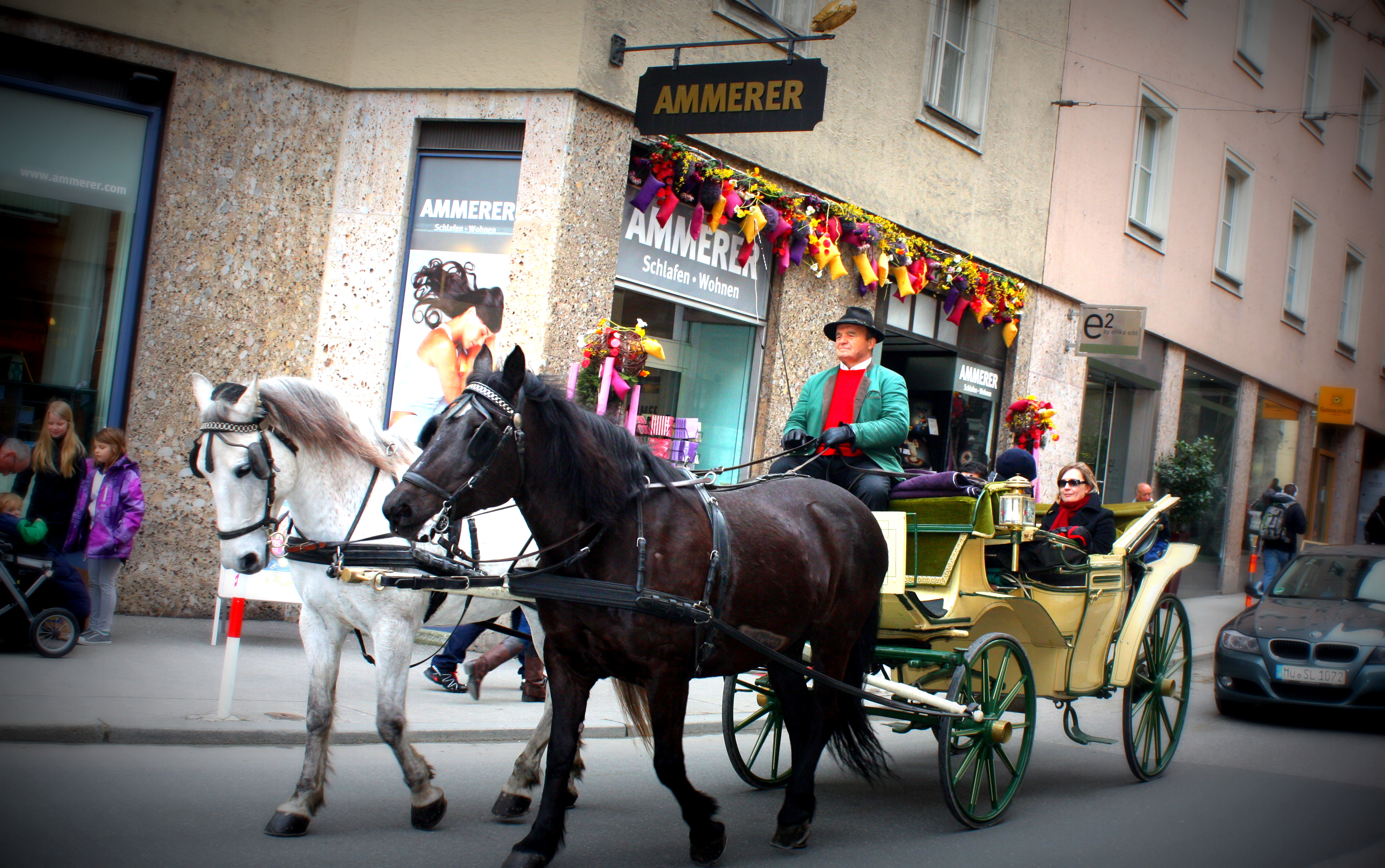Cruising the pedestrian streets in style: Traditional clothes are proudly worn around Easter time – spotted in many of Salzburg’s public spaces