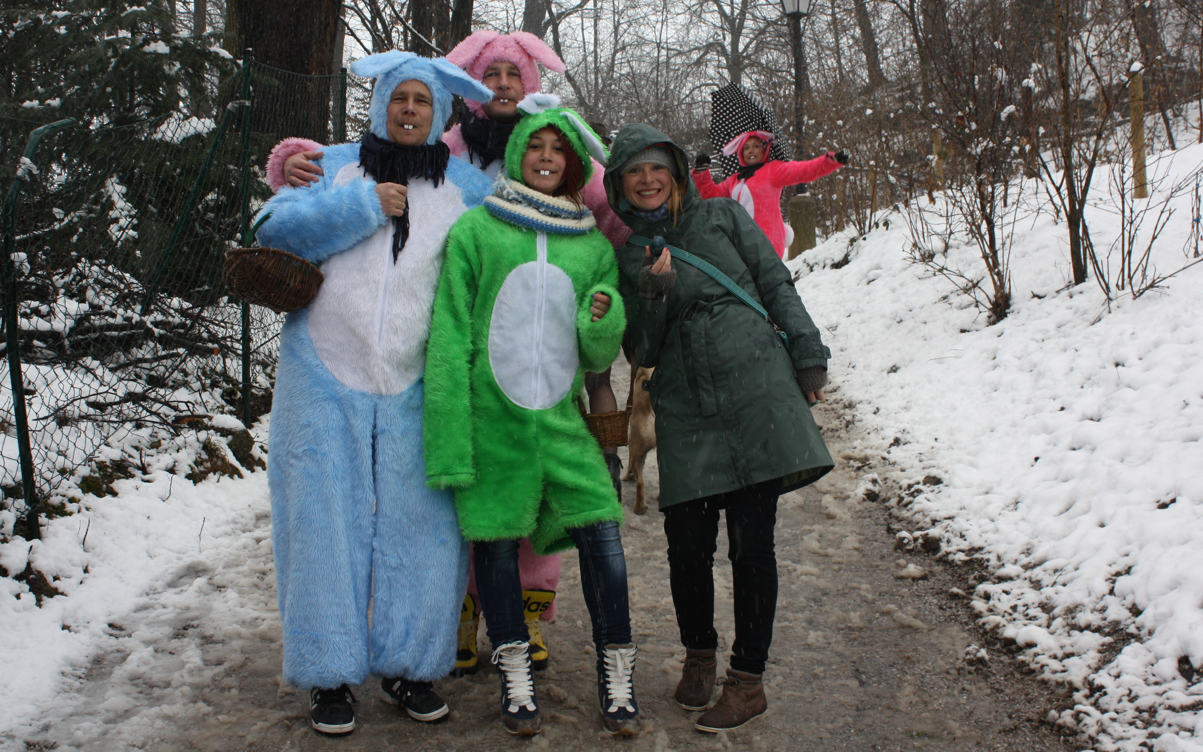 No Easter weekend visit would be complete without a visit from the Easter Bunny – and yes, they gave us Easter eggs bringing smiles despite the spring snow!!