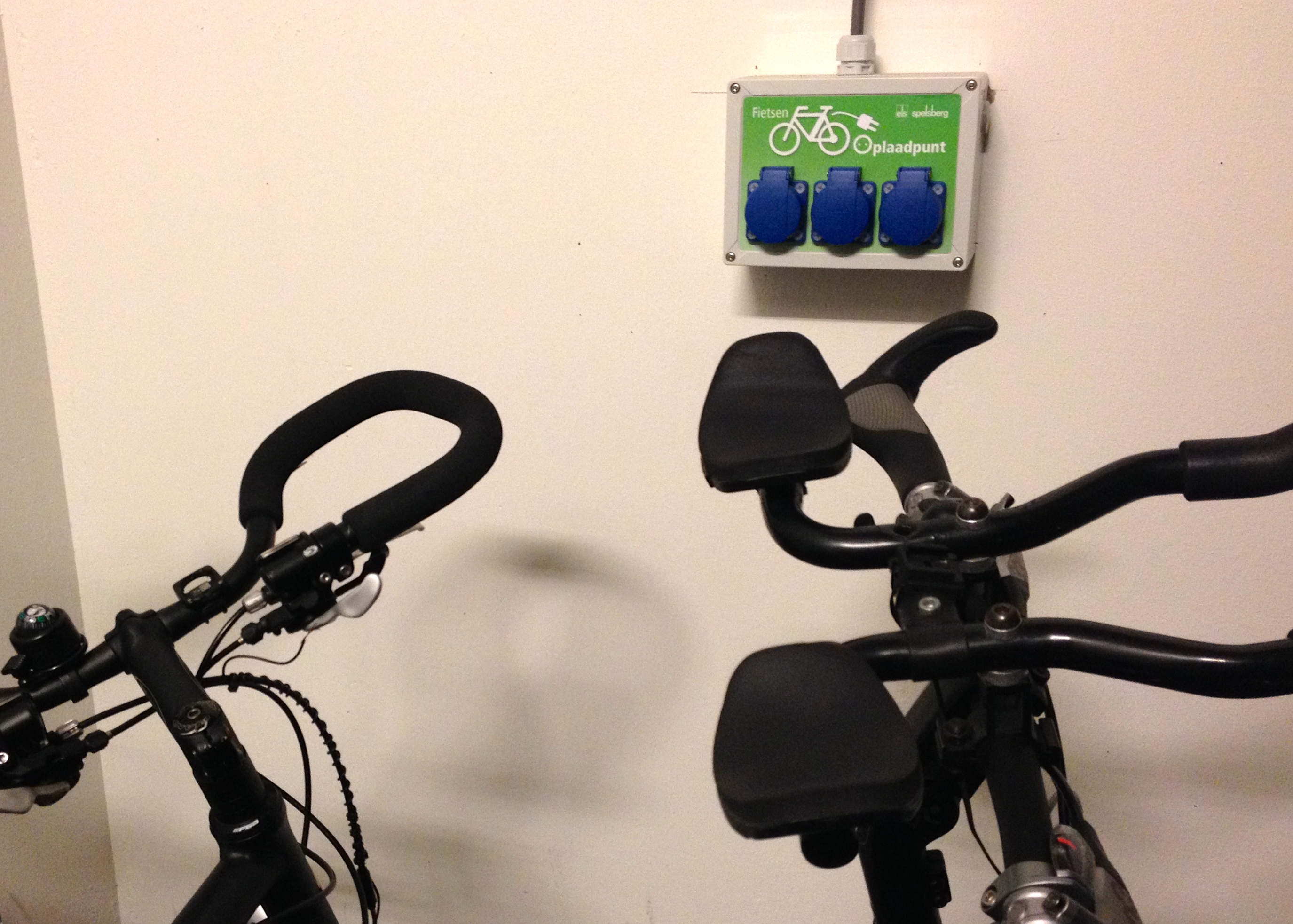 Typically Dutch: it's not only electric cars, but also electric bicycle charging stations! This one is at my office bicycle shed (in Wagenigen). While I prefer self-powered peddling, sometimes distances are long and the wind is strong, so not a bad option... charge it while you work!
