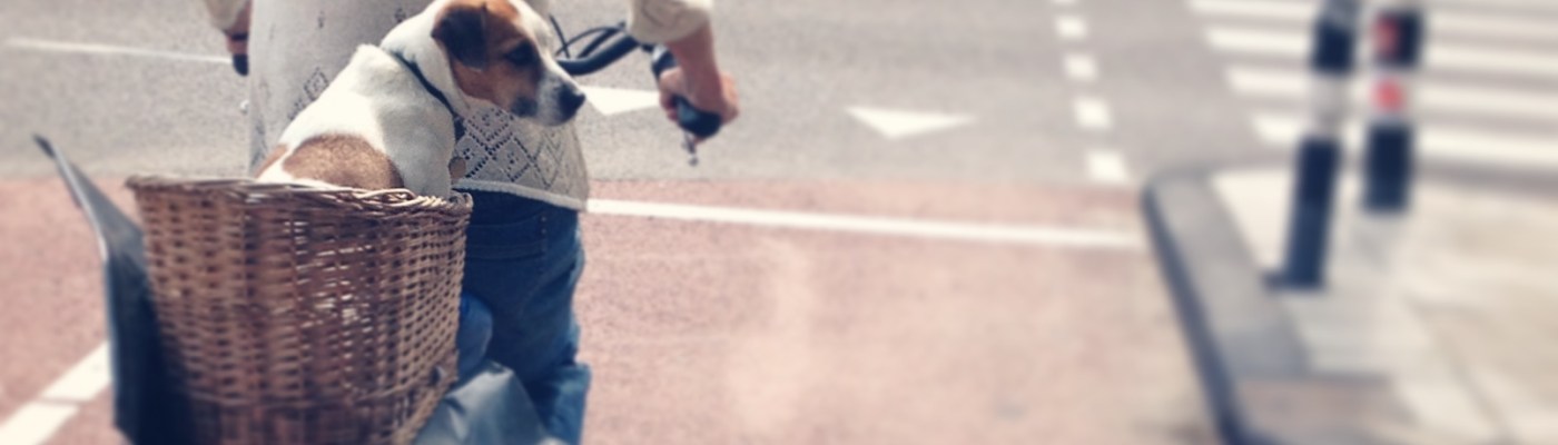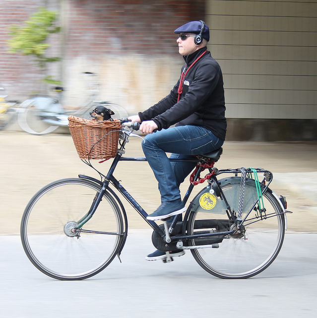 One of my favourite images is the canine-friendly cyclist. Because well, it’s not only children that are hauled on the back (or front) of bikes; it’s rather common to witness pets join along for the ride. While it appears that dogs are more accustomed to the bicycle, I’ve also seen the occasional cycling cat. In pet stores (and I imagine bicycle shops as well) you can even buy a miniature pet carrier basket to attach to your bicycle. However, these are talented animals; even without the special carrier basket, I’ve seen dogs balance nicely on top of children’s bike seats, on handlebars, in grocery baskets, in saddle bags on the back of a bike, or comfortably relax in the carrier of a bakfiets alone or together with children – one happy wholesome family outing, Dutch style. Of course, some pet owners prefer to have their furry companions pacing alongside their bicycles, providing a whole new meaning of take the dog out for a walk.