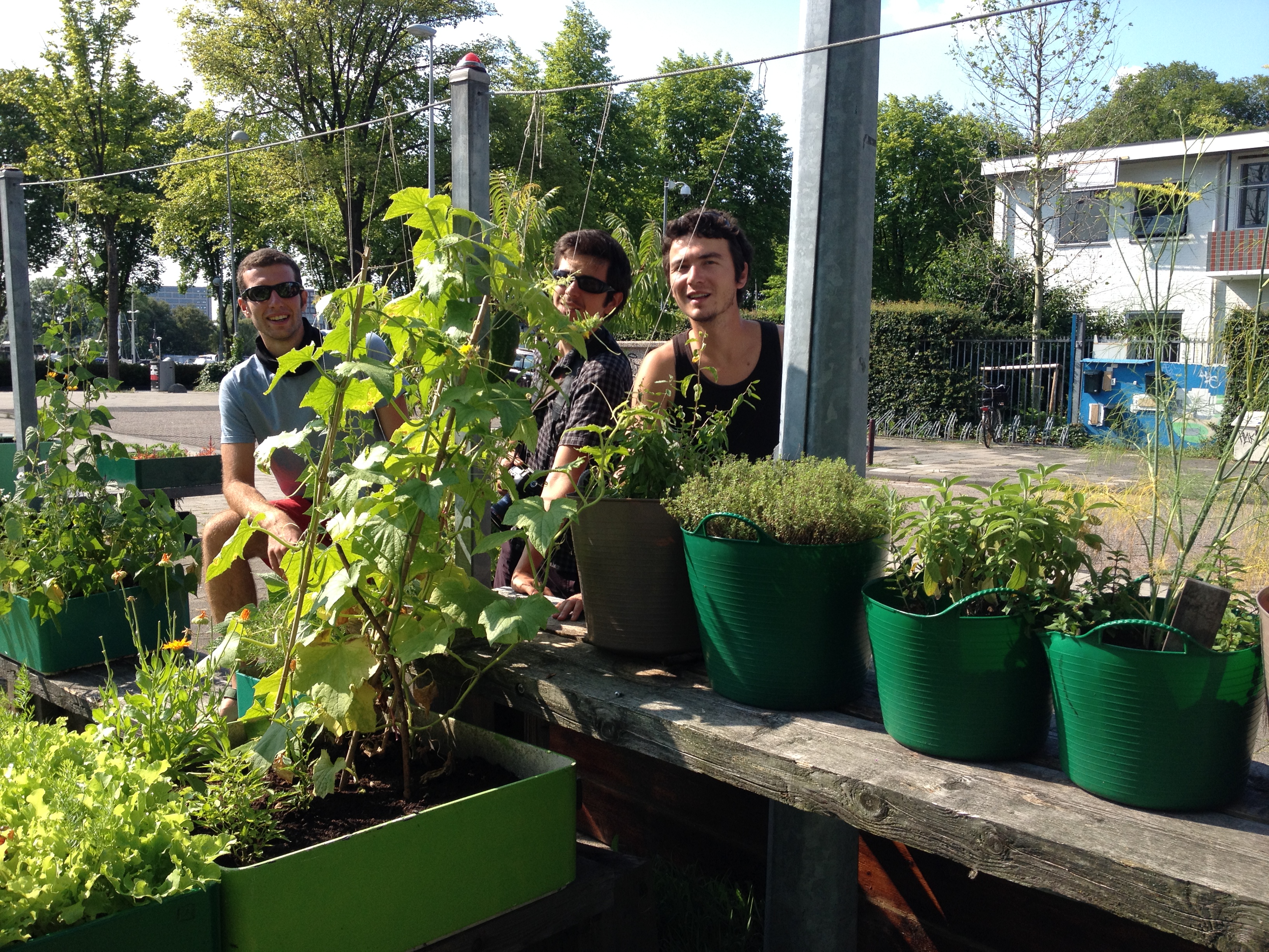 - Visiting Voedsetuin Ijplein or the “Food Bank Garden” in Amsterdam Noord with Etienne, Simon and Yoann (left- right)