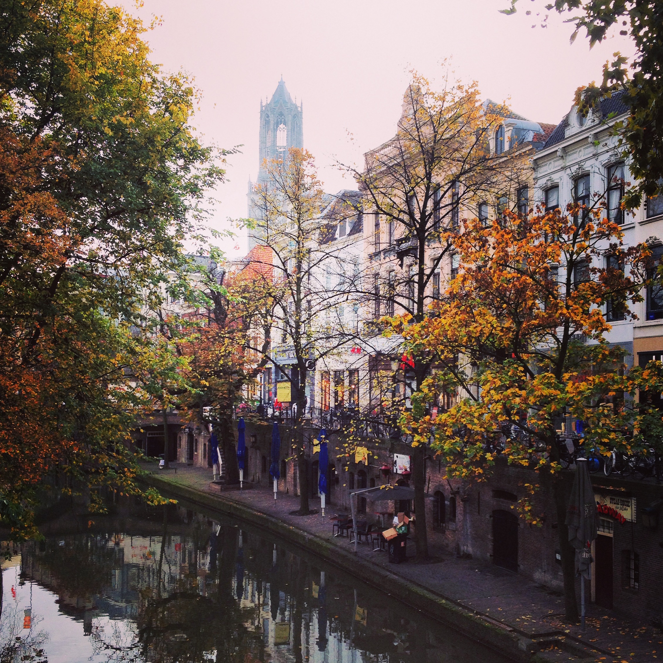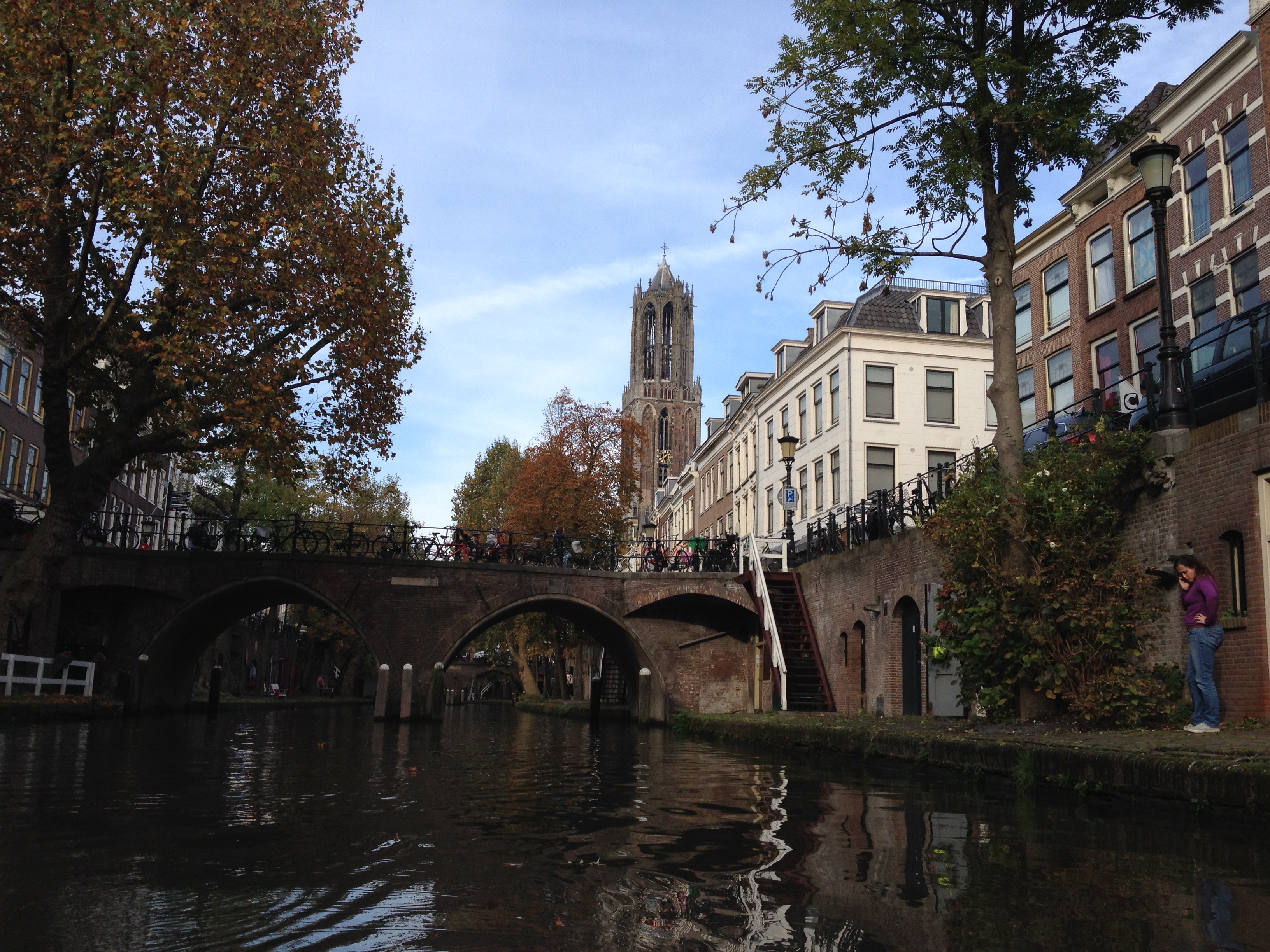 The staffers at this friendly small business examined our attire with some scepticism, however kayaking through the slow-moving canals isn’t overly challenging and they trusted us to their boats. For less than 10 EUR we enjoyed a wonderful alternative lunch break: gazing up at the cyclists, the Dom Tower, the ancient buildings and trees painted in orange, red and yellow… all the while paddling under ancient bridges, through leaf-chocked waters.