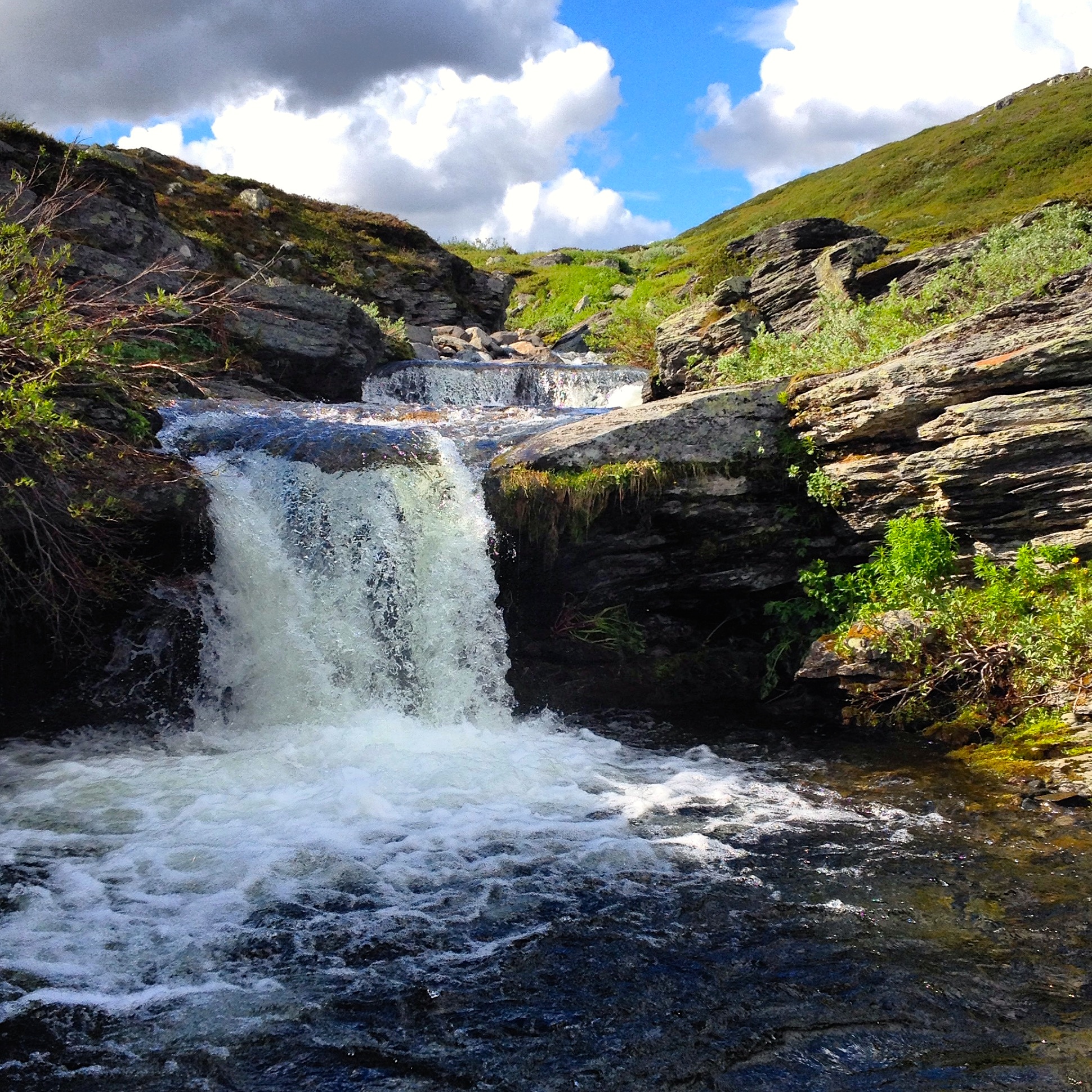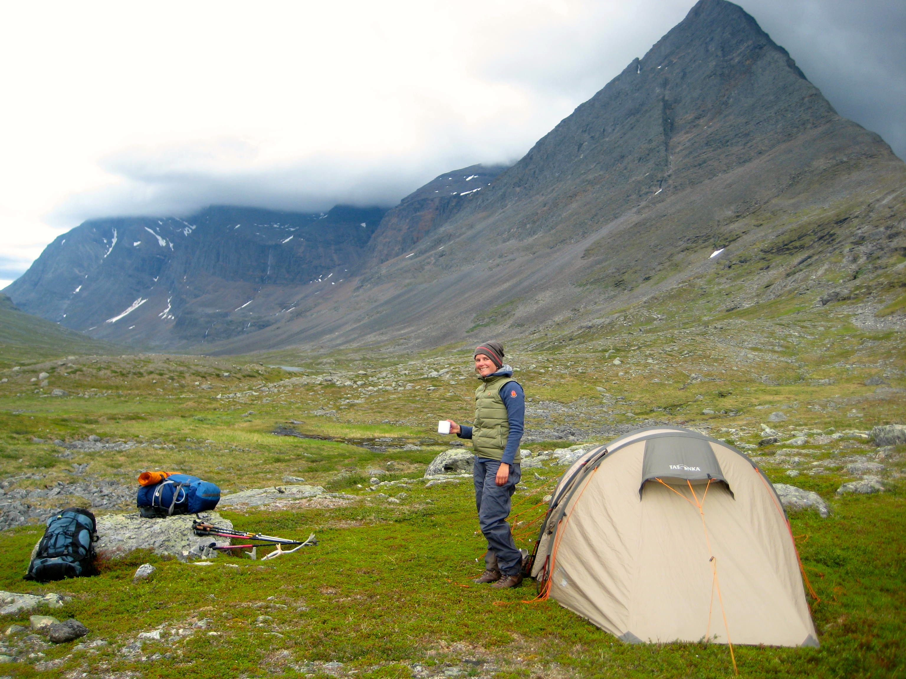 IMG_9086Each night sounds a little different: sometimes of pounding waterfalls racing down steep mountain cliffs; sometimes of icy rivers jumping over giant boulders, or lazy babbling brooks; sometimes of wind whipping through the highlands; sometimes of pattering raindrops – justifying going to bed a bit early or staying tucked in the sleeping bag a bit longer. Sometimes (although thankfully not too often) it sounds of buzzing mosquitos or small rodents eager to investigate our food stocks.